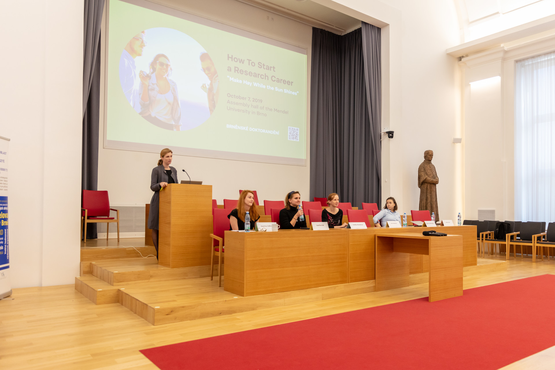 Poslední mentoringovou akcí byl mentoringový konferenční blok „Mentoring – How to Drive my PhD to a Successful End“, který otevíral konferenci „How To Start a Research Career – Make Hay While the Sun Shines“, určenou pro post/doktorand(k)y a pořádanou 7. 10. na půdě MENDELU ve spolupráci s Přírodovědeckou fakultou Masarykovy univerzity portálem Researchjobs.cz. a Českou asociací